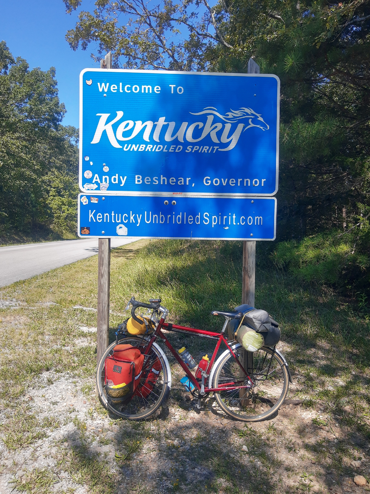 I've ridden this portion of the trip several times when I travel to/from Kansas. Pic below of the Gunnar in front of the Kentucky State line sign. I'm assuming this is the first time it has been ridden in KY.